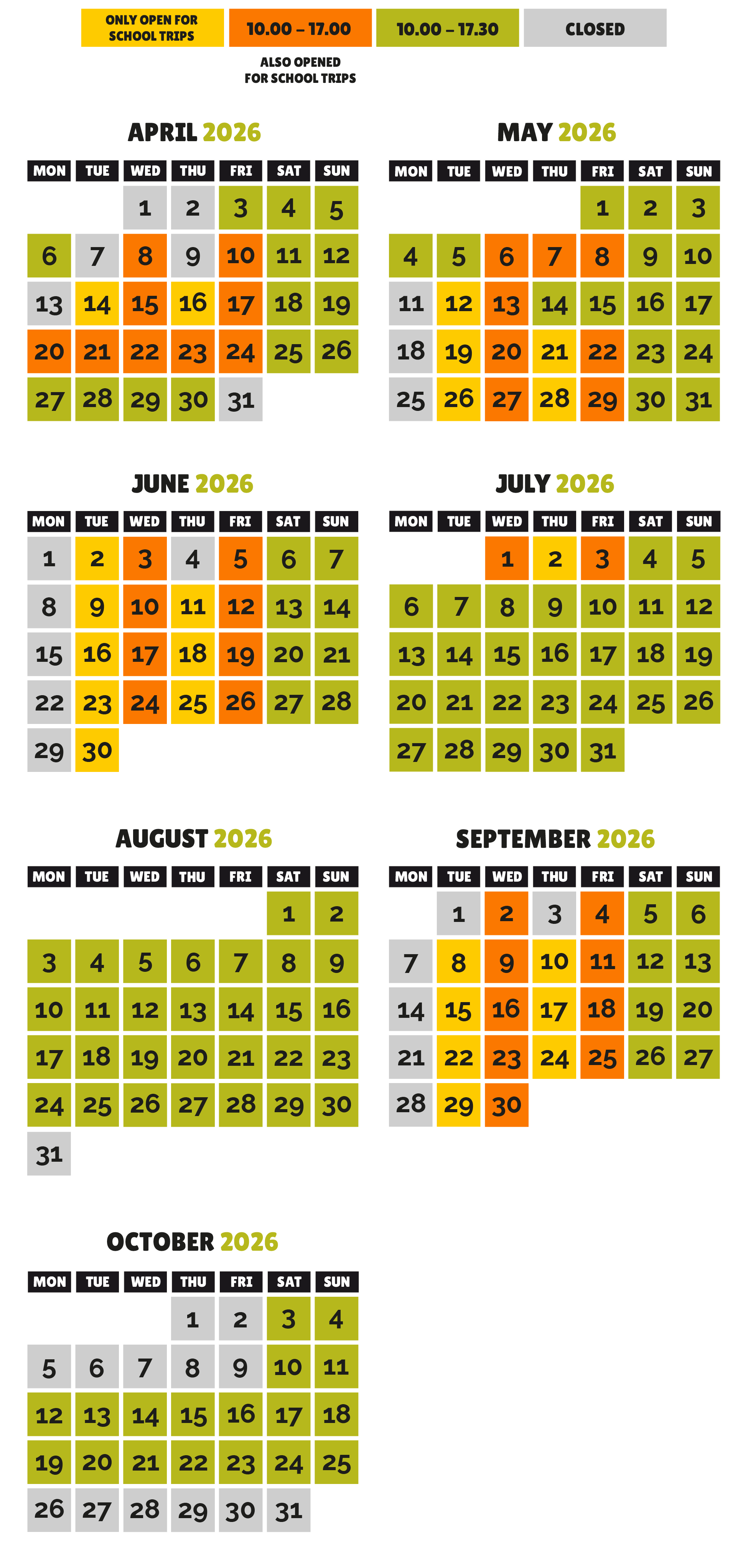 March 13, 2017 admin Opening hours Here you can find the opening hours of Dinoland. Book your ticket(s) here.
